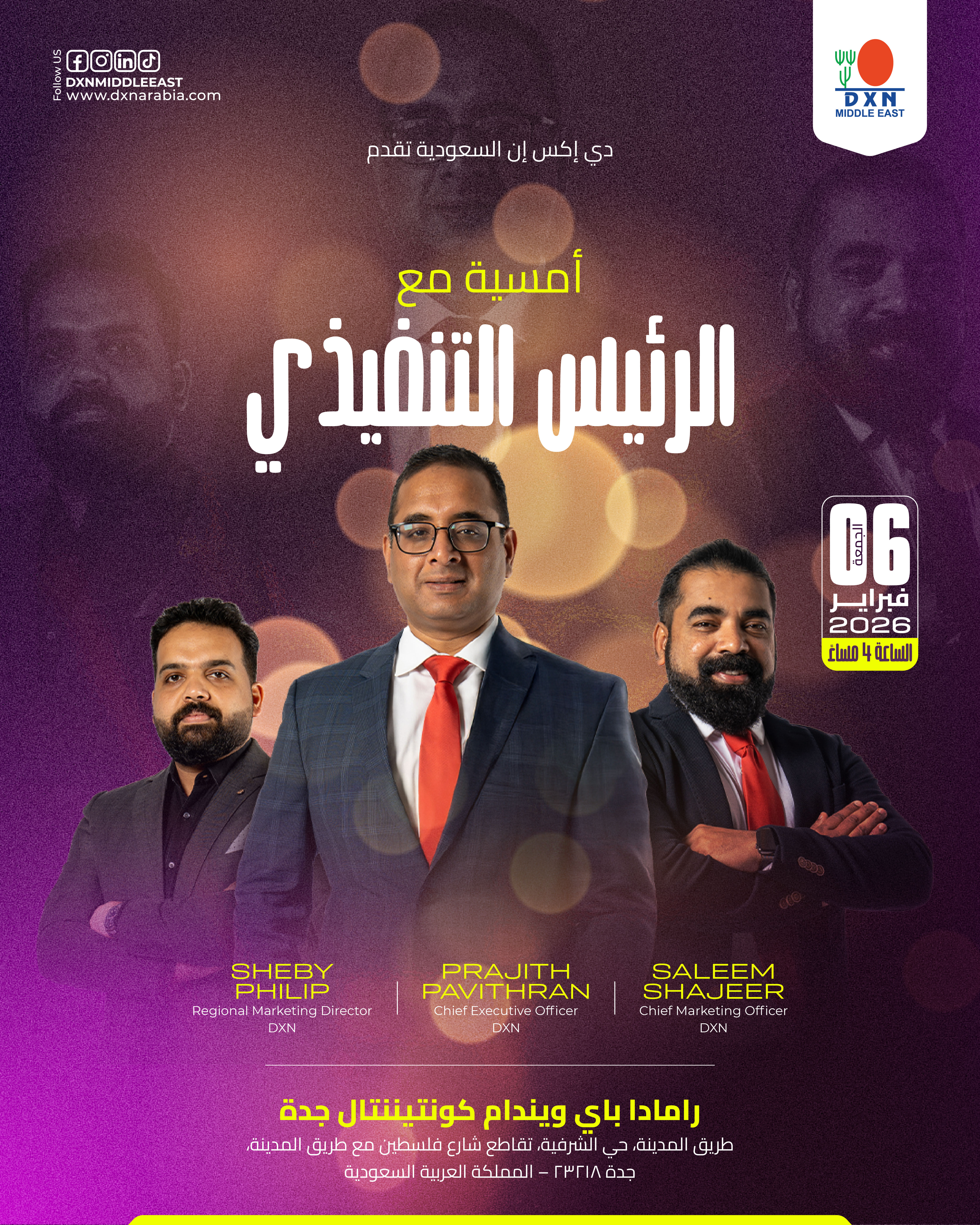 انضموا إلينا في أمسية حصرية مليئة بالإلهام والقيادة والرؤية، بحضور الإدارة العليا لشركة دي إكس إن.
